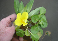 Creeping Water Primrose leaves are willow-like and are alternately arranged on hollow red stems. Young leaves may be rounded. Has bright yellow flowers from spring – fall. Sprawling growth habit that forms dense mats.